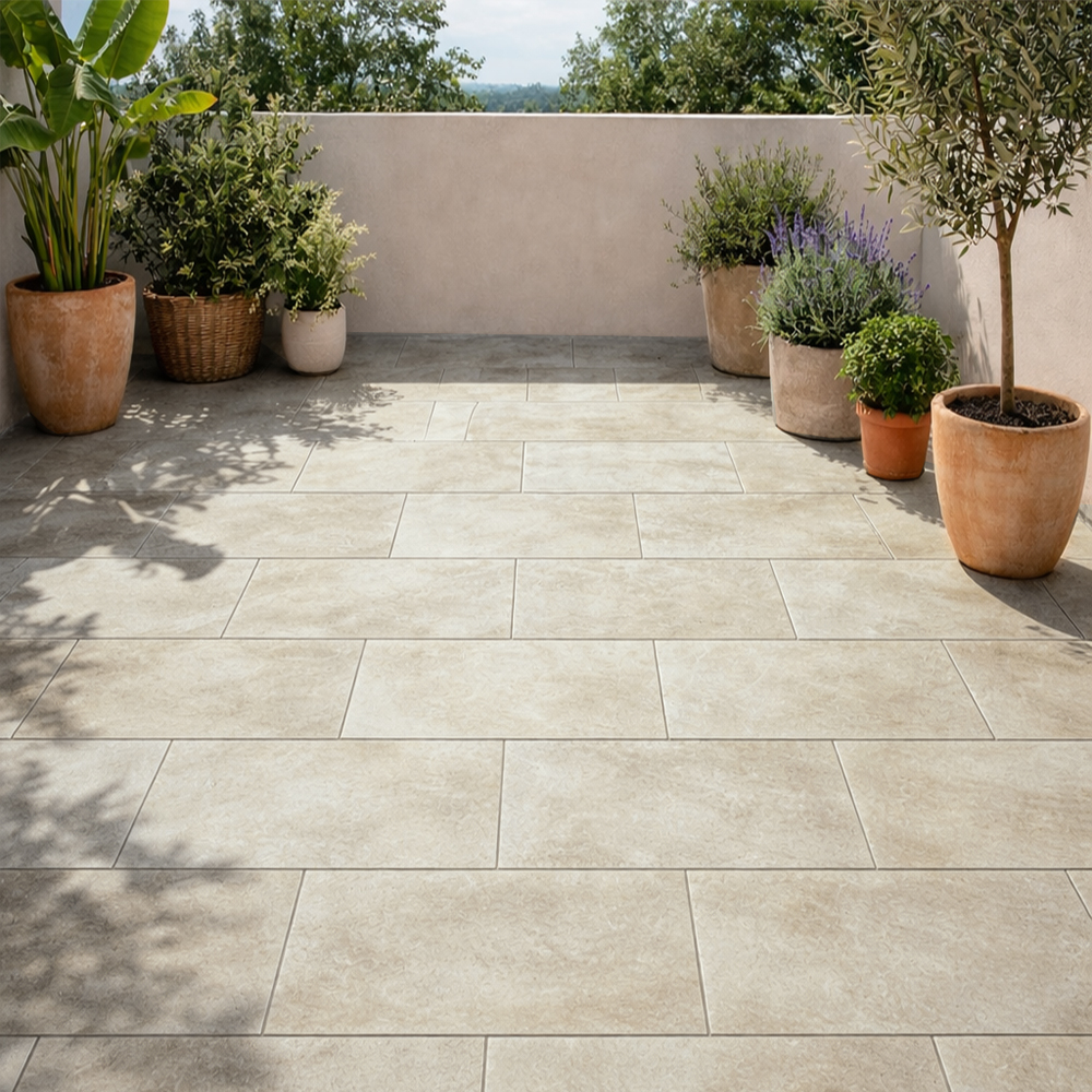 Principalement utilisé en extérieur et plage de piscine à condition de bien choisir la finition antidérapante aux normes R11, ce carrelage en grès cérame peut être posé en intérieur.
