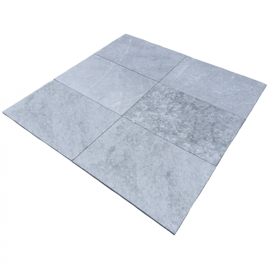 Le carrelage en marbre noir sablé 40,6 x 61 cm est en pierre marbrière naturelle élégante et résistante.
