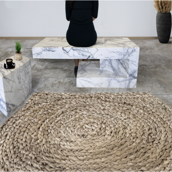 L'ensemble banc et table en marbre Delhi est un mobilier design, raffiné, idéal pour embellir votre salon ou terrasse couverte.