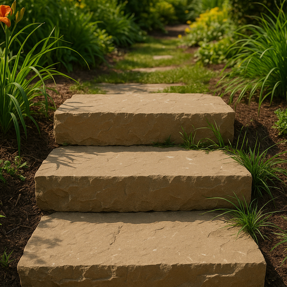Idéale pour la création ou rénovation d’escaliers extérieurs, l'aménagement de terrasses en dénivelé, de marches d’entrée ou de jardin paysager, cette marche en pierre combine élégance, robustesse et grande résistance aux intempéries.