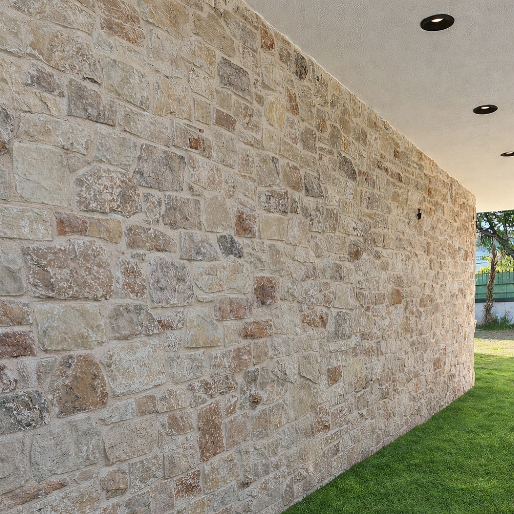 Le parement en pierre Taco Scabas en vrac de 2/4 cm d'épaisseur conviendra parfaitement à vos murs intérieurs et extérieurs pour leur apporter une ambiance chaleureuse que l'on retrouve souvent dans le sud de la France.
