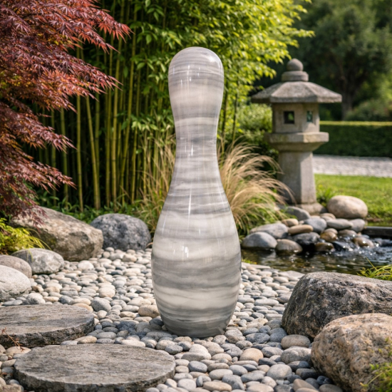 Cette quille crée un point focal visuel fort, parfait pour décorer une allée, structurer un coin salon extérieur ou enrichir une terrasse ou un jardin zen.