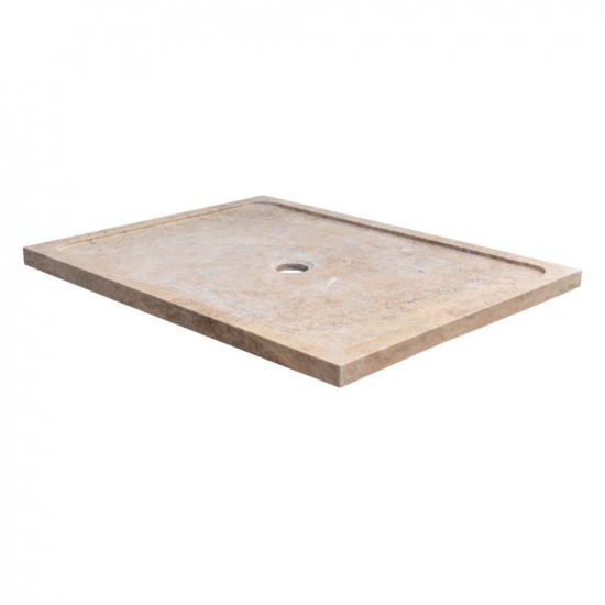 Receveur de douche Walnut en travertin adouci de 90 x 120 cm qui apportera de l'authnticité à votre salle de bains.